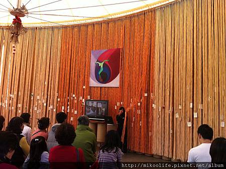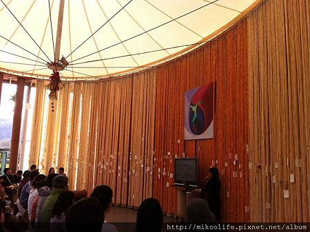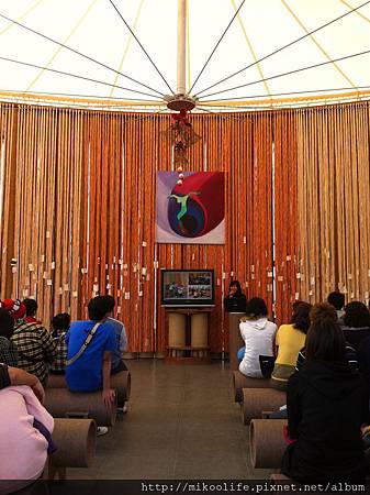 這裡就是紙教堂的內部,抵達時正有專員在為大家講解紙教堂的由來,並且為大家說明這些在後面的紙帷幕,都是可以丟進洗衣機裡面清洗的,真的是好特別的材質,難怪我一直好奇這座教堂怎麼興建的,雖然他並非全部都是用紙建造,但有大部分使用到這種特殊的紙質,真的是讓人嘆為觀止。